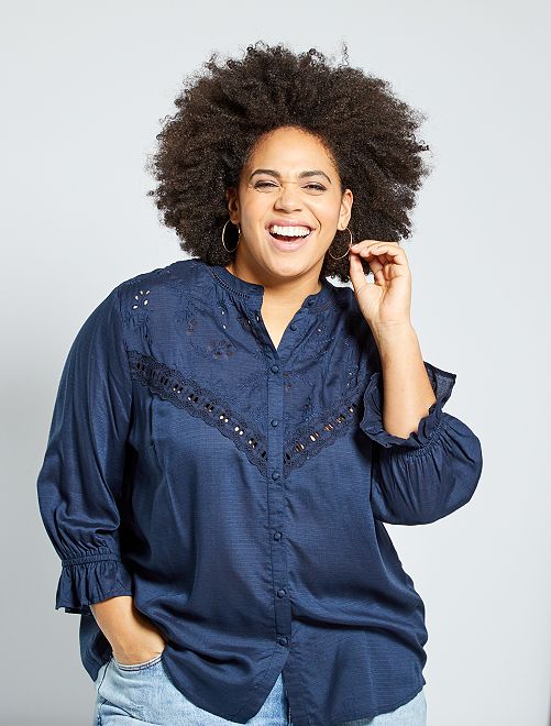 Chemise avec broderie anglaise - bleu marine