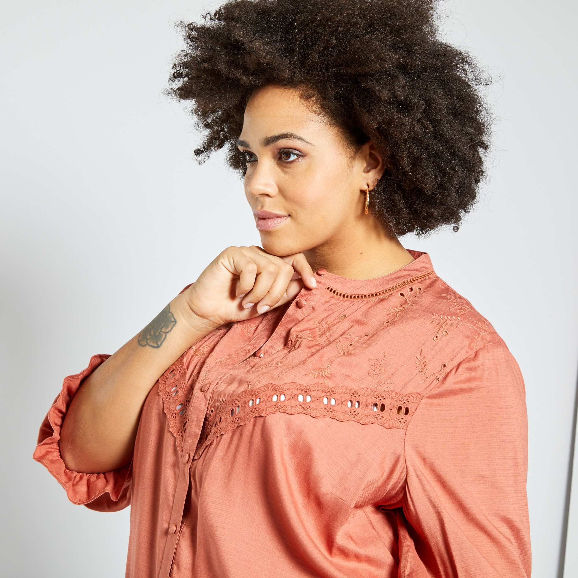 Chemise avec broderie anglaise - saumon
