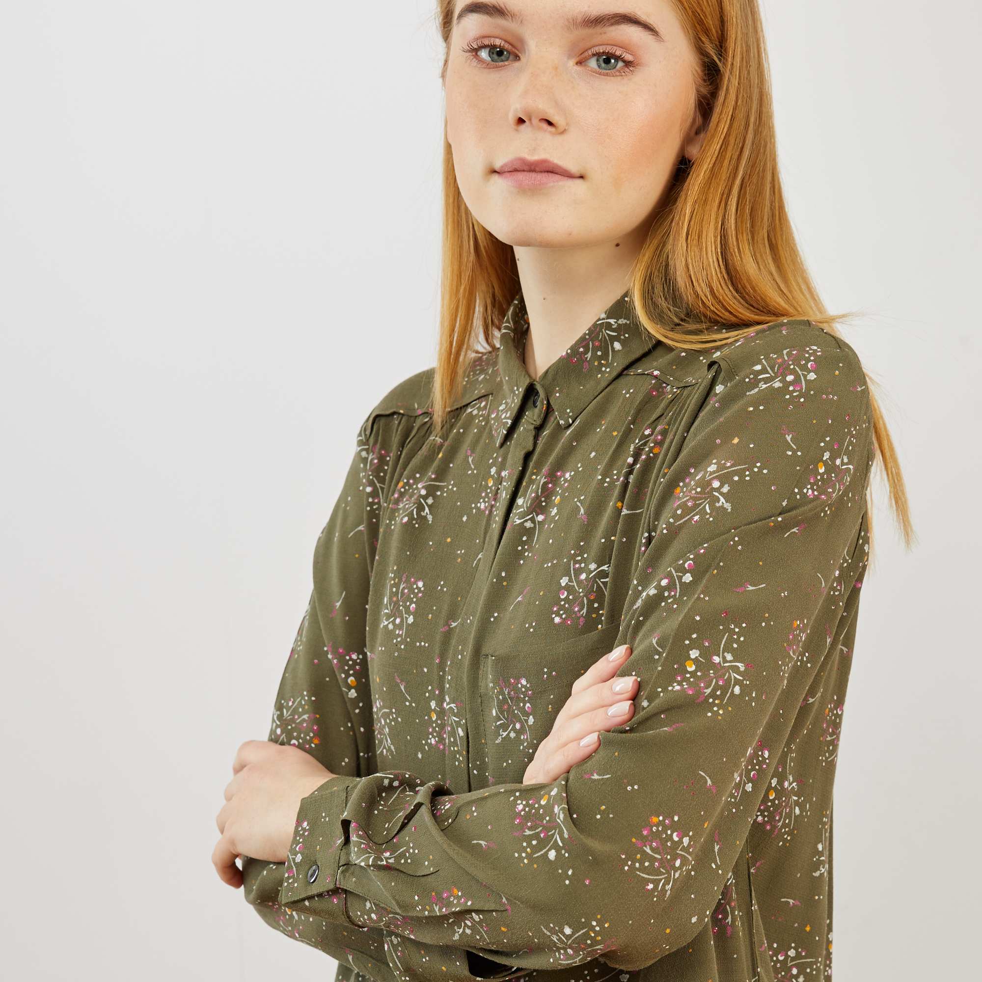 Une joli voile fluide parsemé de petites fleurs délicates : voilà une chemise qui peut s'associer facilement avec un jean ou une jupe pour une note féminine. Avec sa coupe longue, elle sera parfaite avec un jegging !