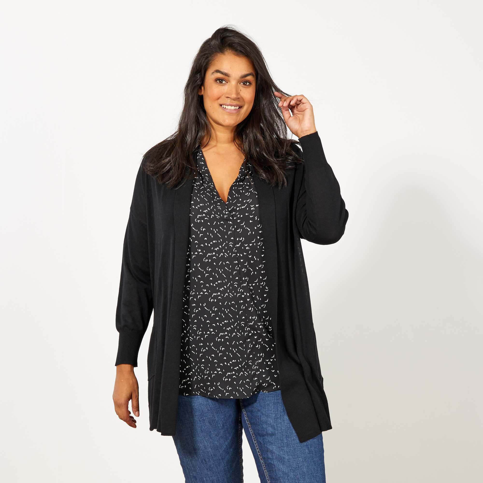 Gilet long 2 poches en maille fine