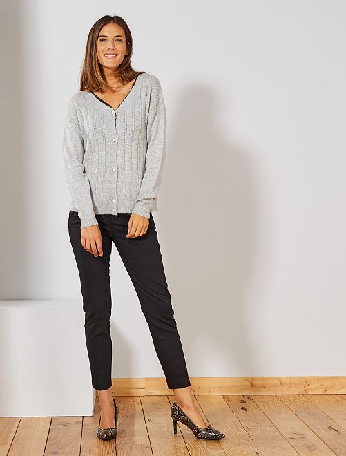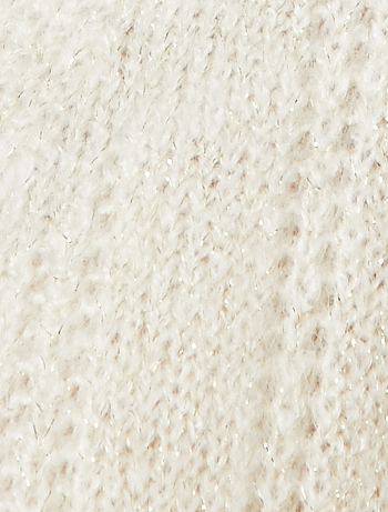 Une touche de glitter qui fait la différence pour ce gilet en maille fantaisie douce. Pour souligner encore plus son côté féminin, il est souligné de dentelle à l'encolure.