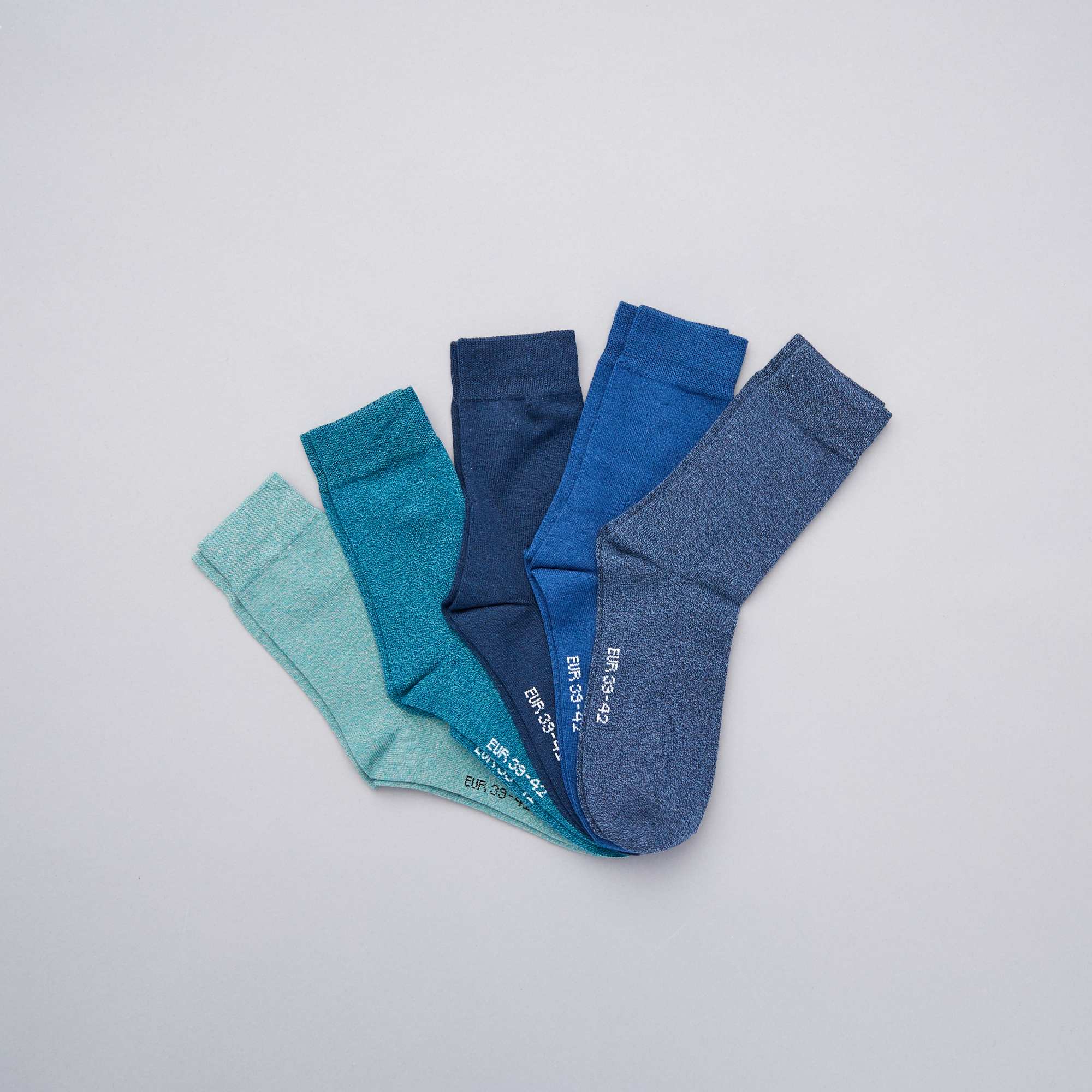 Lot de 5 paires de chaussettes en coton mouliné                                                     bleu vert