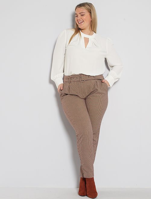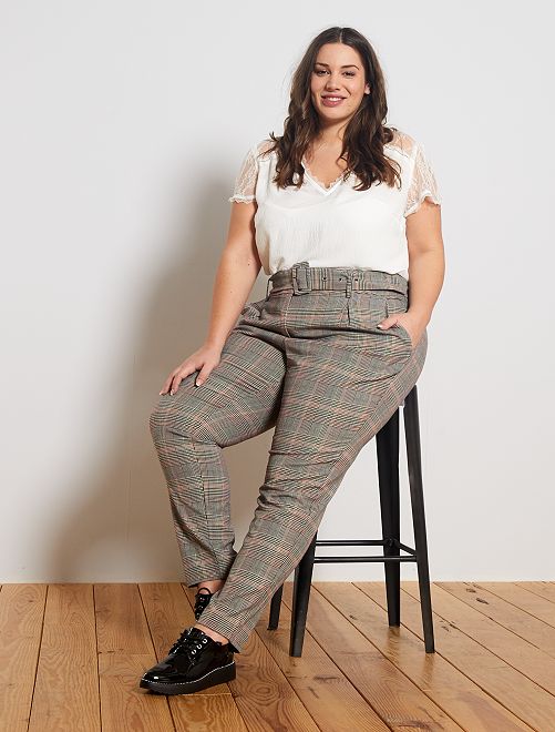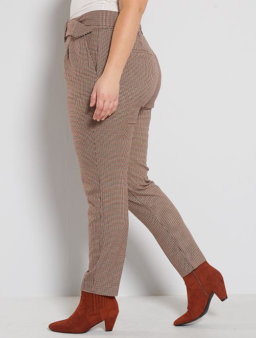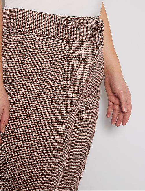Pantalon imprimé avec ceinture - carreaux