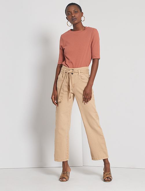 Pantalon large taille haute                                         beige