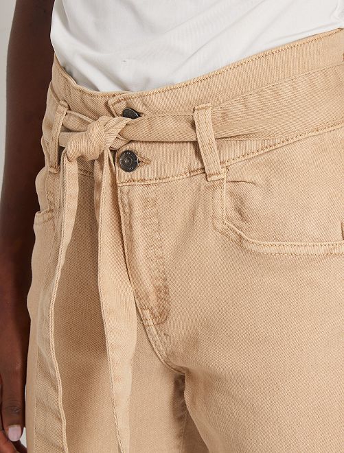 Pantalon large taille haute - beige