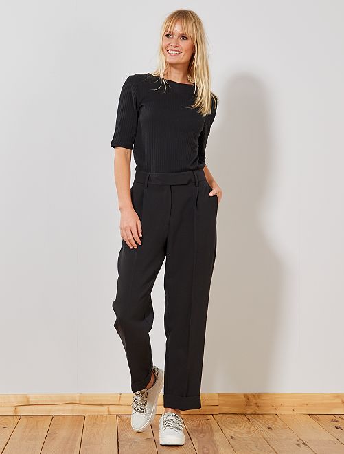 Ample au niveau des cuisses, pour s’affiner à partir du genou, la coupe carotte est particulièrement confortable et s’adapte à toutes morphologies : des cuisses les plus fines aux plus épaisses.