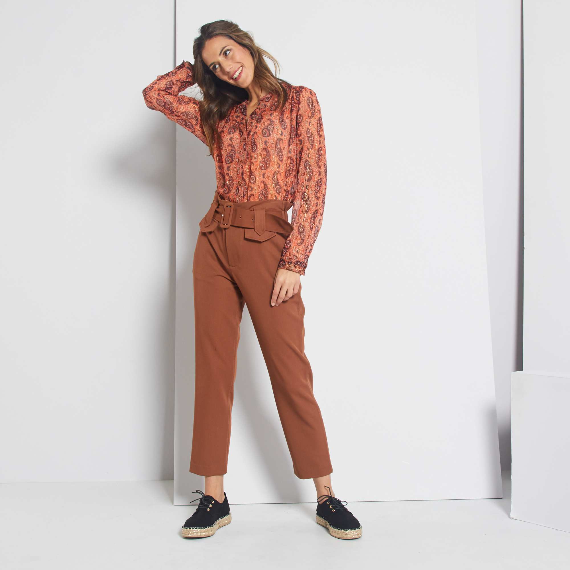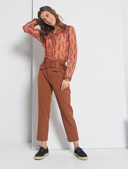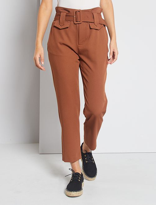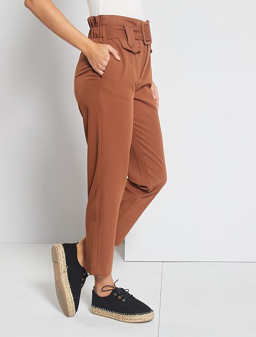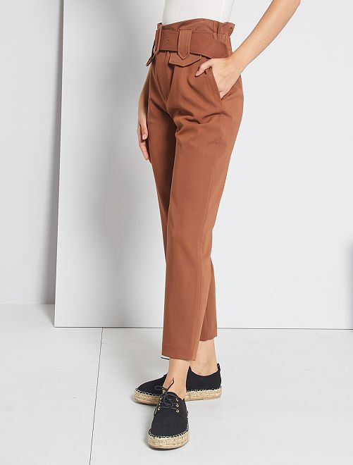 Pantalon regular taille haute - brun