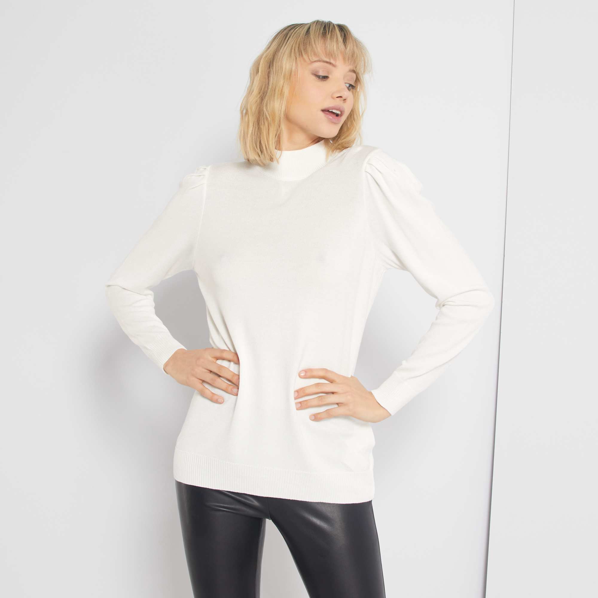 Pull col cheminée et manches gigot - blanc cassé
