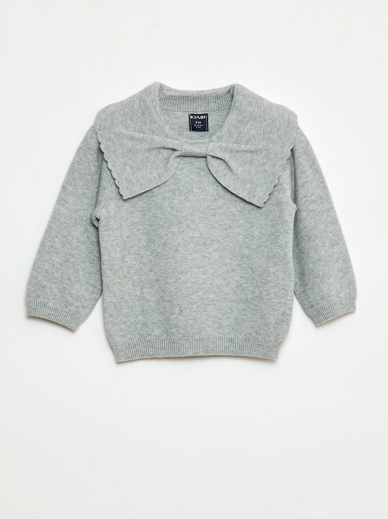 Pull en maille avec un large nœud fantaisie devant - Gris