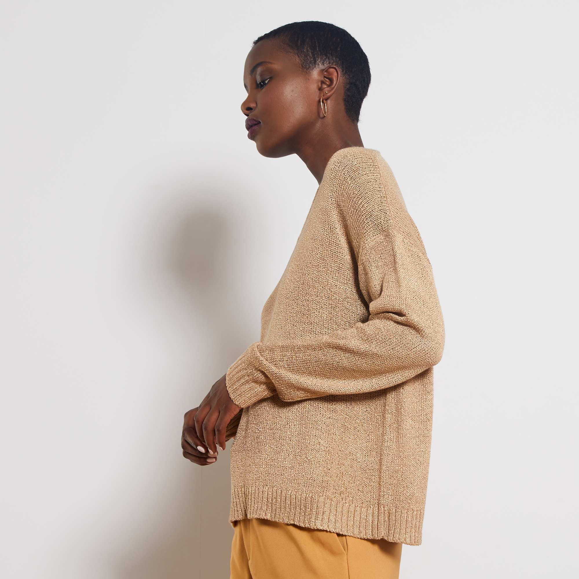 Un pull basique en maille fluide qu'on aime porter avec un jean pour un look casual !