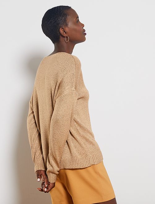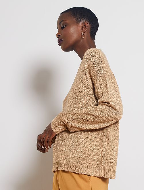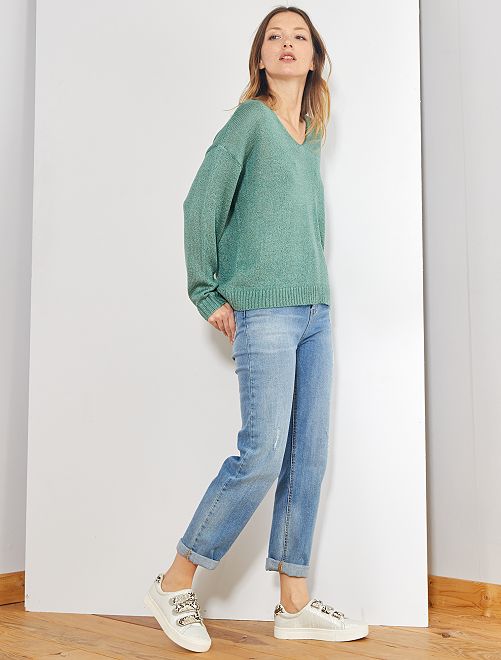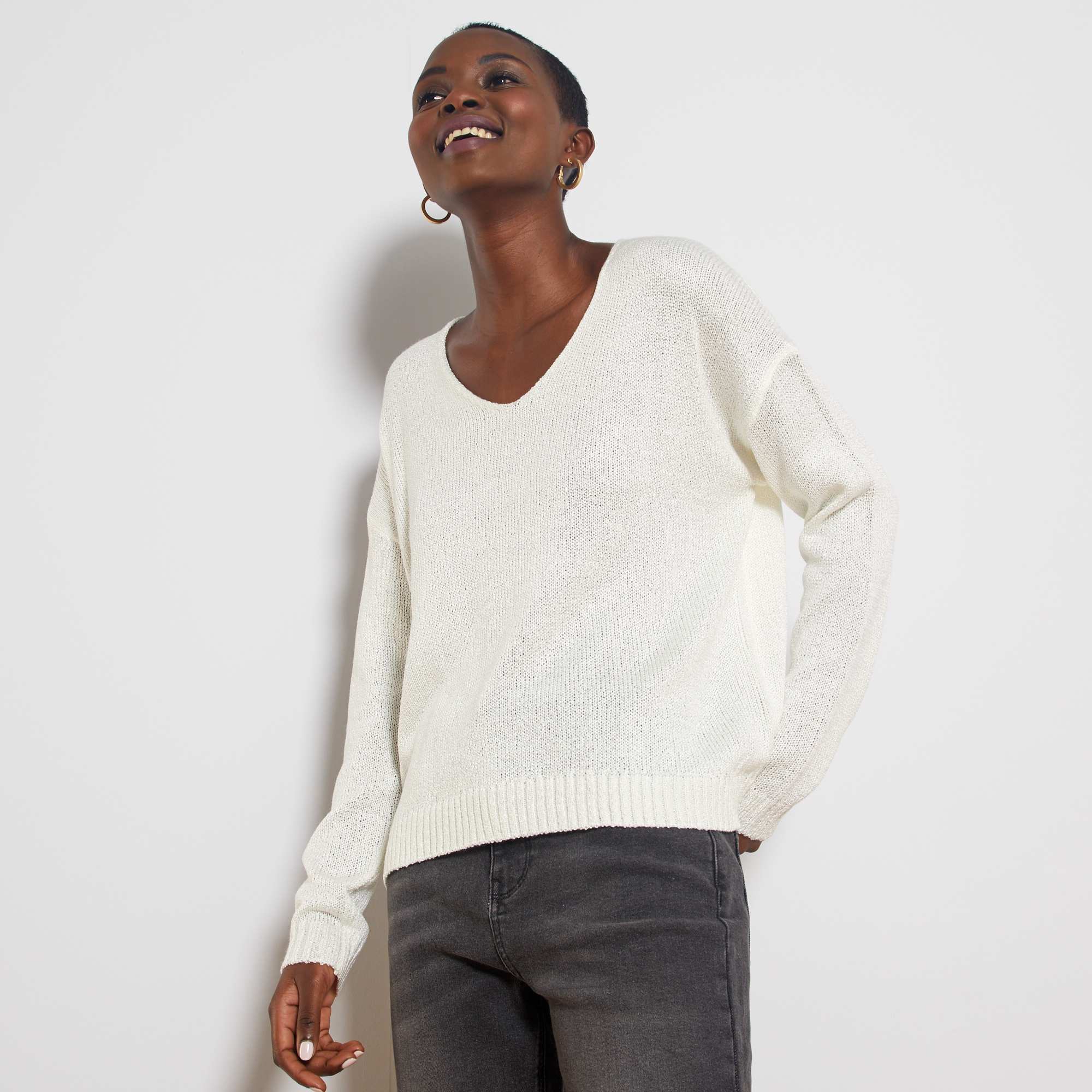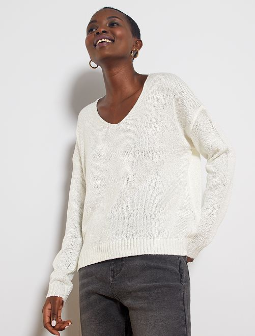 Un pull basique en maille fluide qu'on aime porter avec un jean pour un look casual !