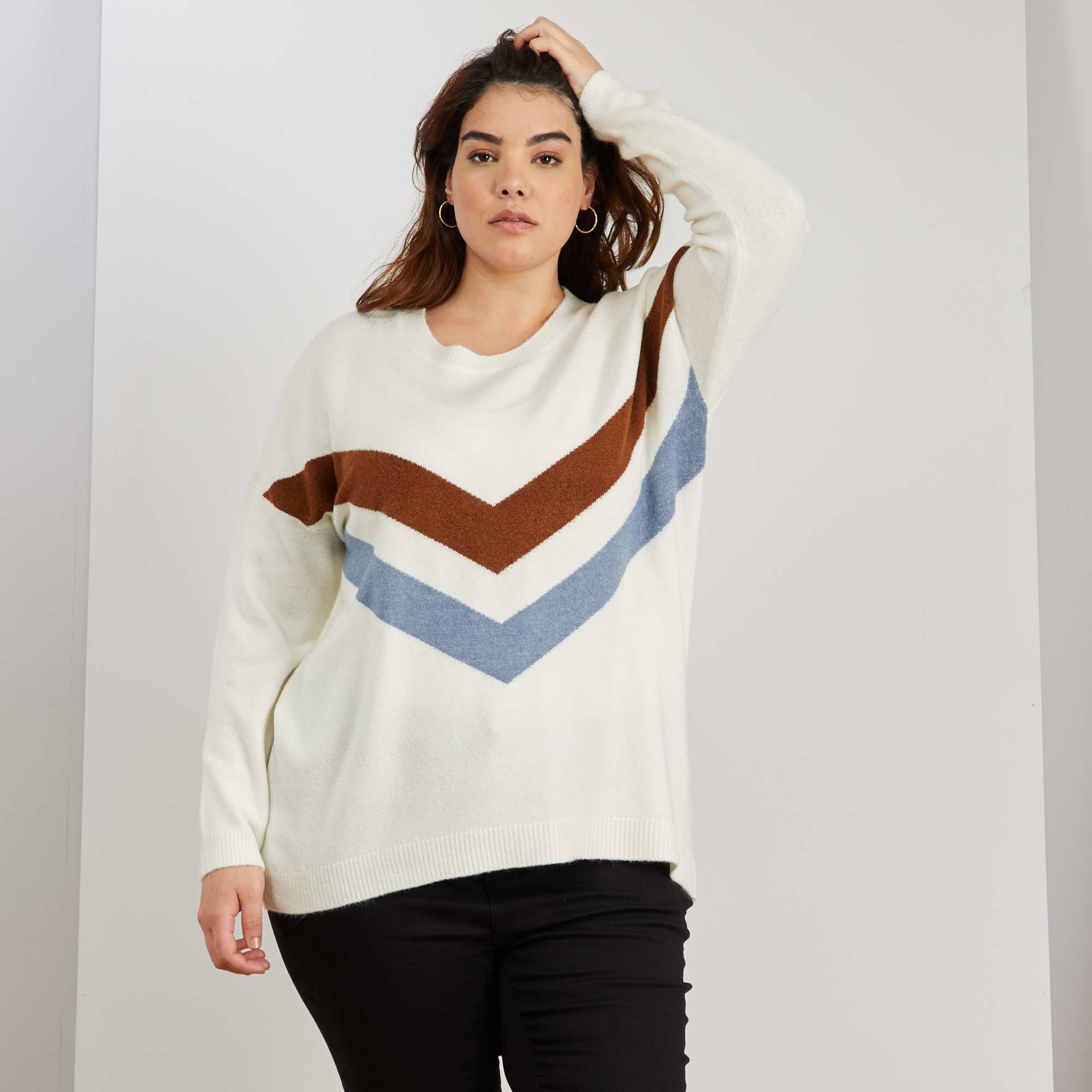 Un pull en maille toute douce aux 3 couleurs qui se marie à ravir ! Un jean, une paire de boots et le trou est joué !