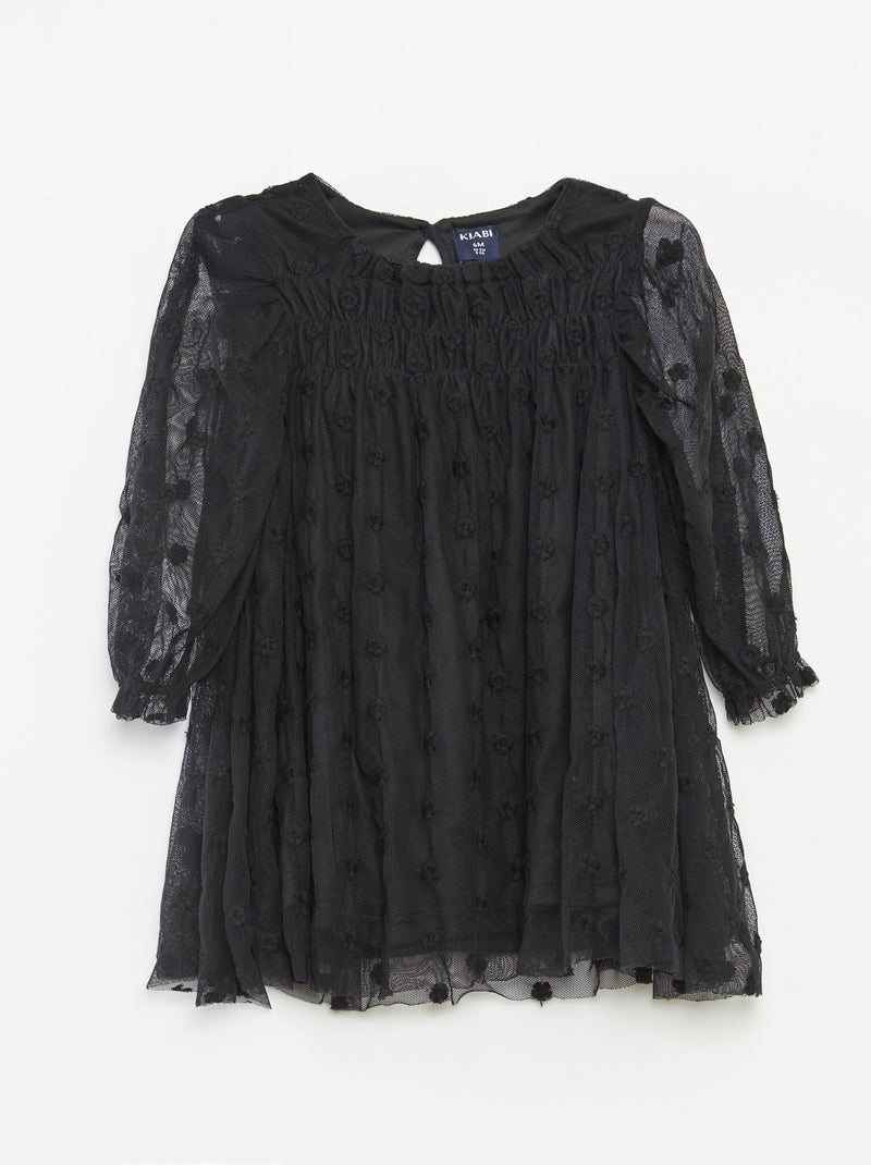 Robe en tulle avec broderies fleurs - Noir
