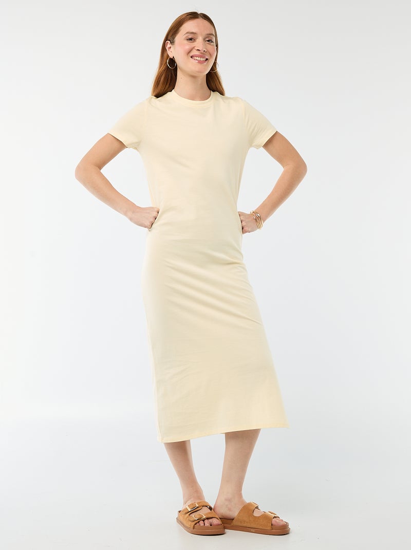 Robe longue en jersey manches courtes - Jaune