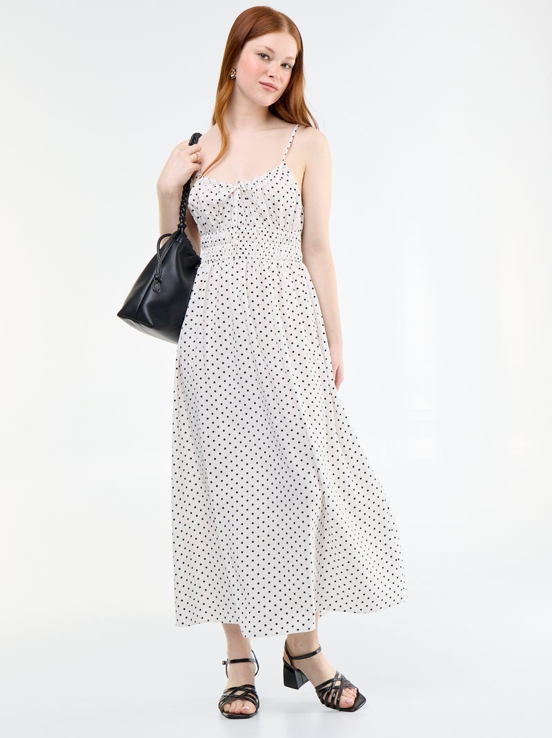Robe midi smockée - Blanc