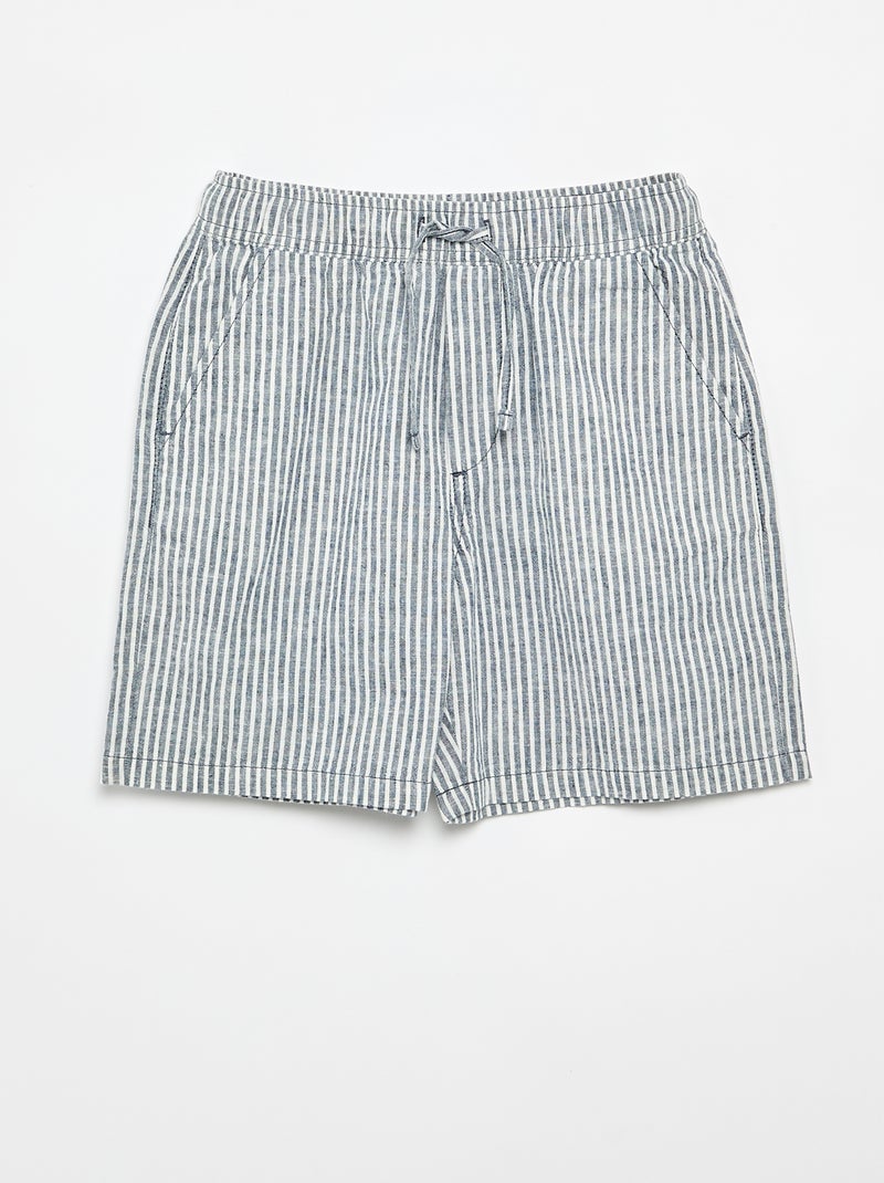 Short rayé léger en lin mélangé - Bleu
