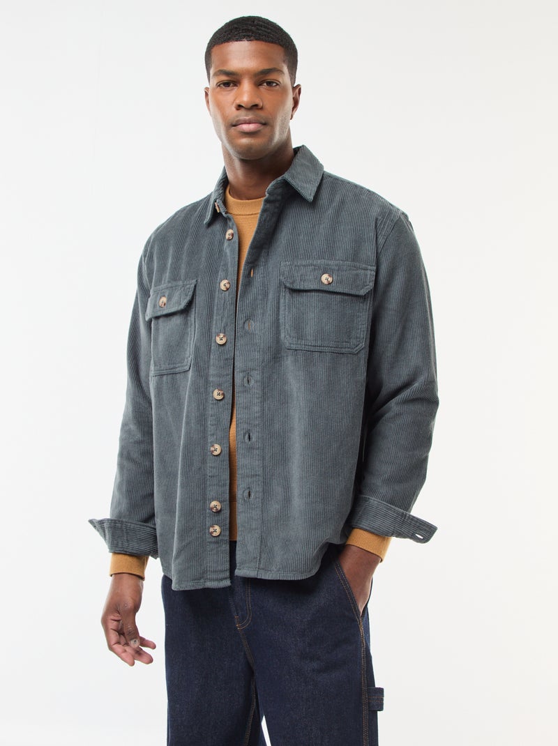 Surchemise en velours coton uni - Kaki
