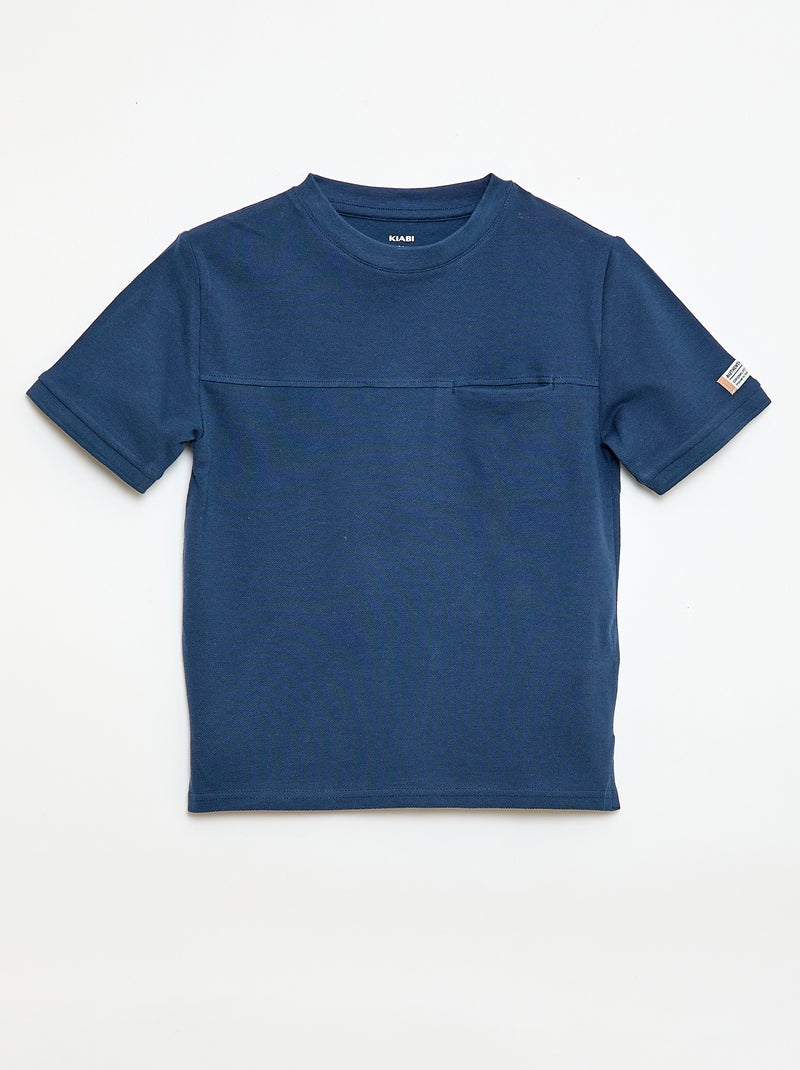 T-shirt en coton piqué à manches courtes - Bleu foncé