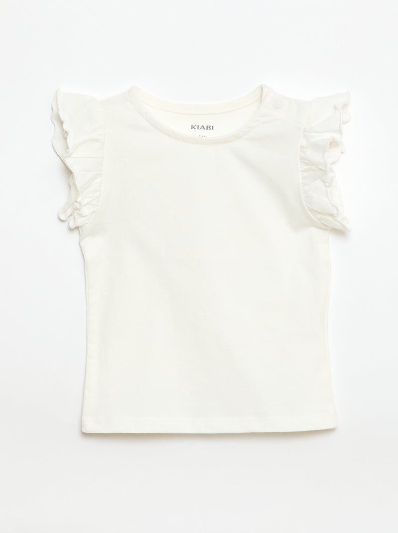 T-shirt en jersey manches courtes volantées - Blanc