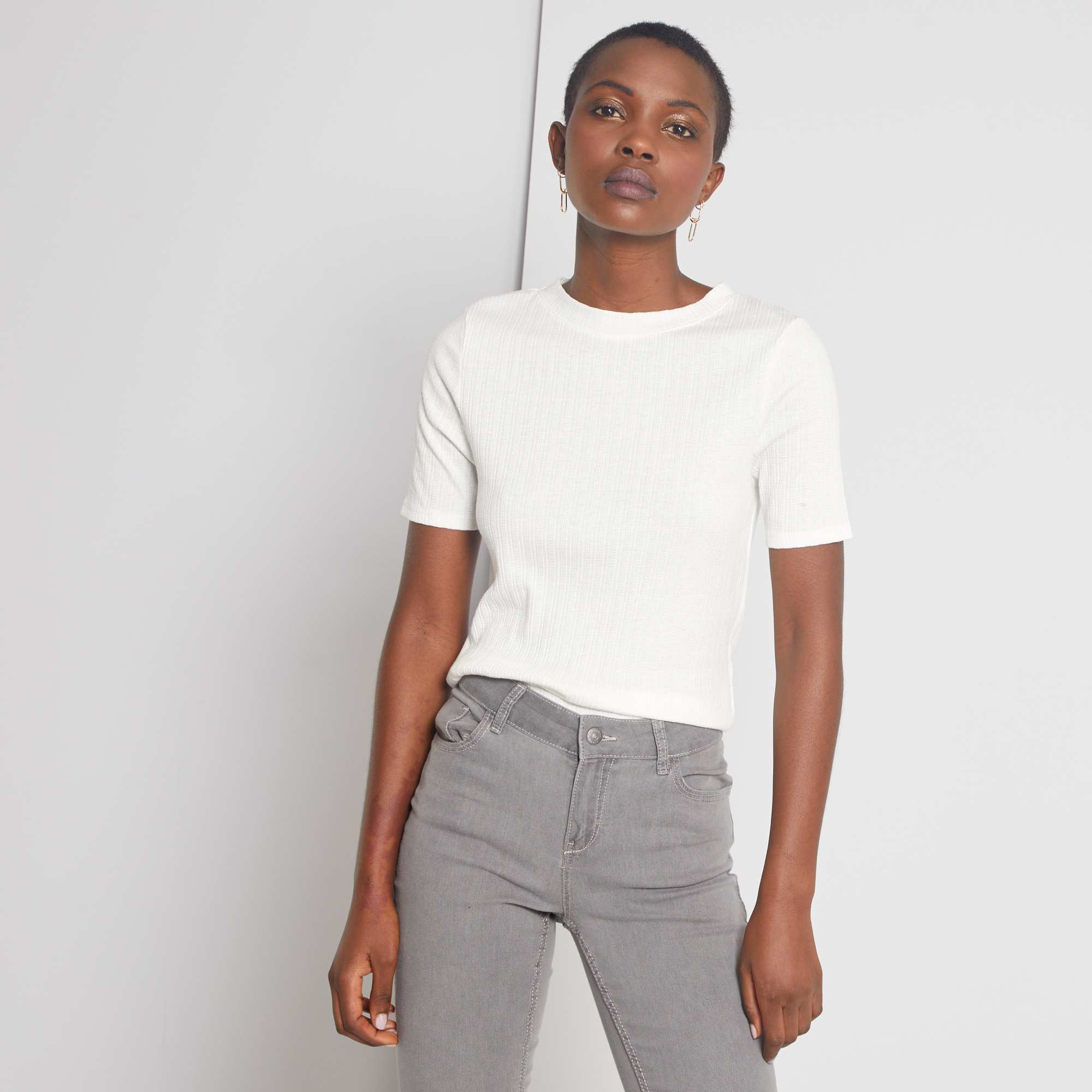 Une jolie maille côtelée fantaisie, un prix tout doux... Voilà de bonnes raisons de shopper ce tee-shirt !