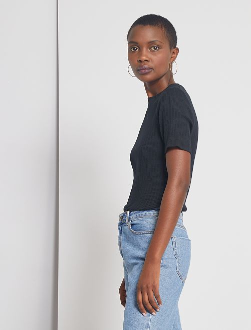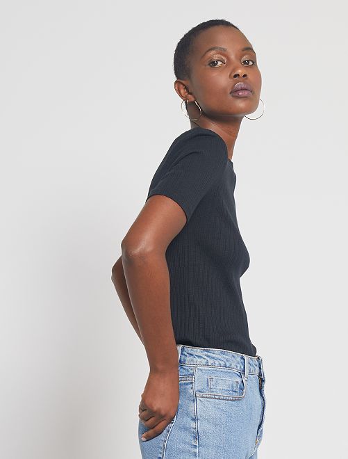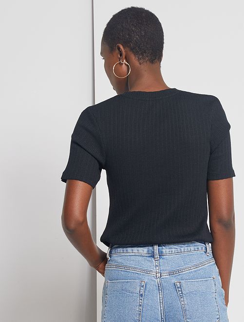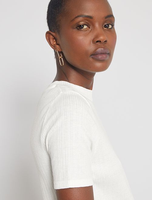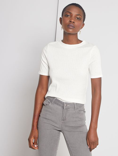 Une jolie maille côtelée fantaisie, un prix tout doux... Voilà de bonnes raisons de shopper ce tee-shirt !