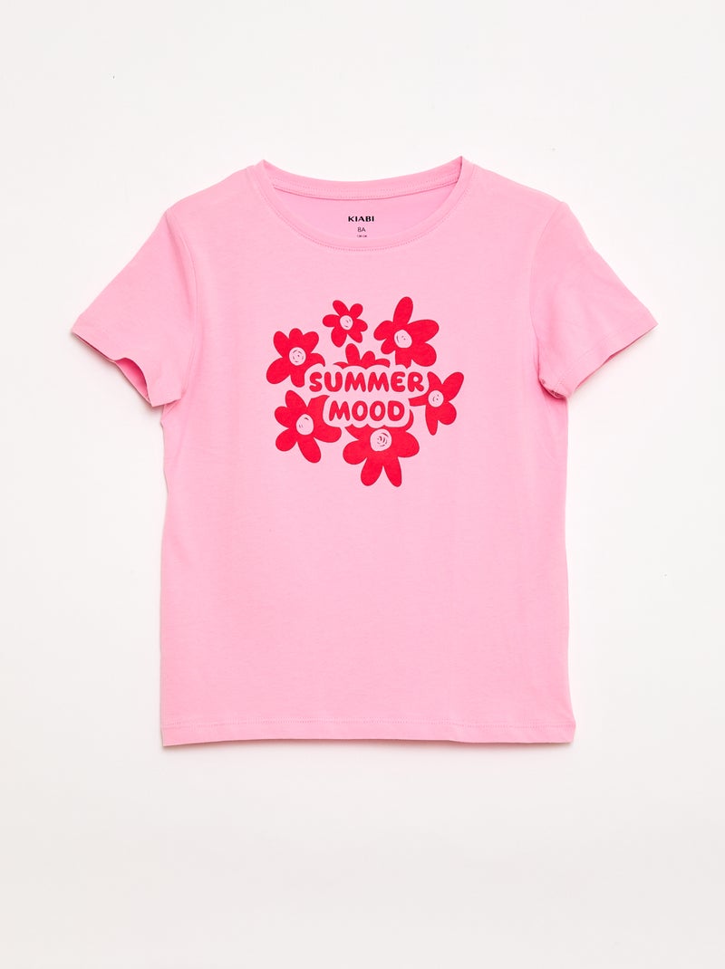 T-shirt imprimé message à manches courtes - Rose
