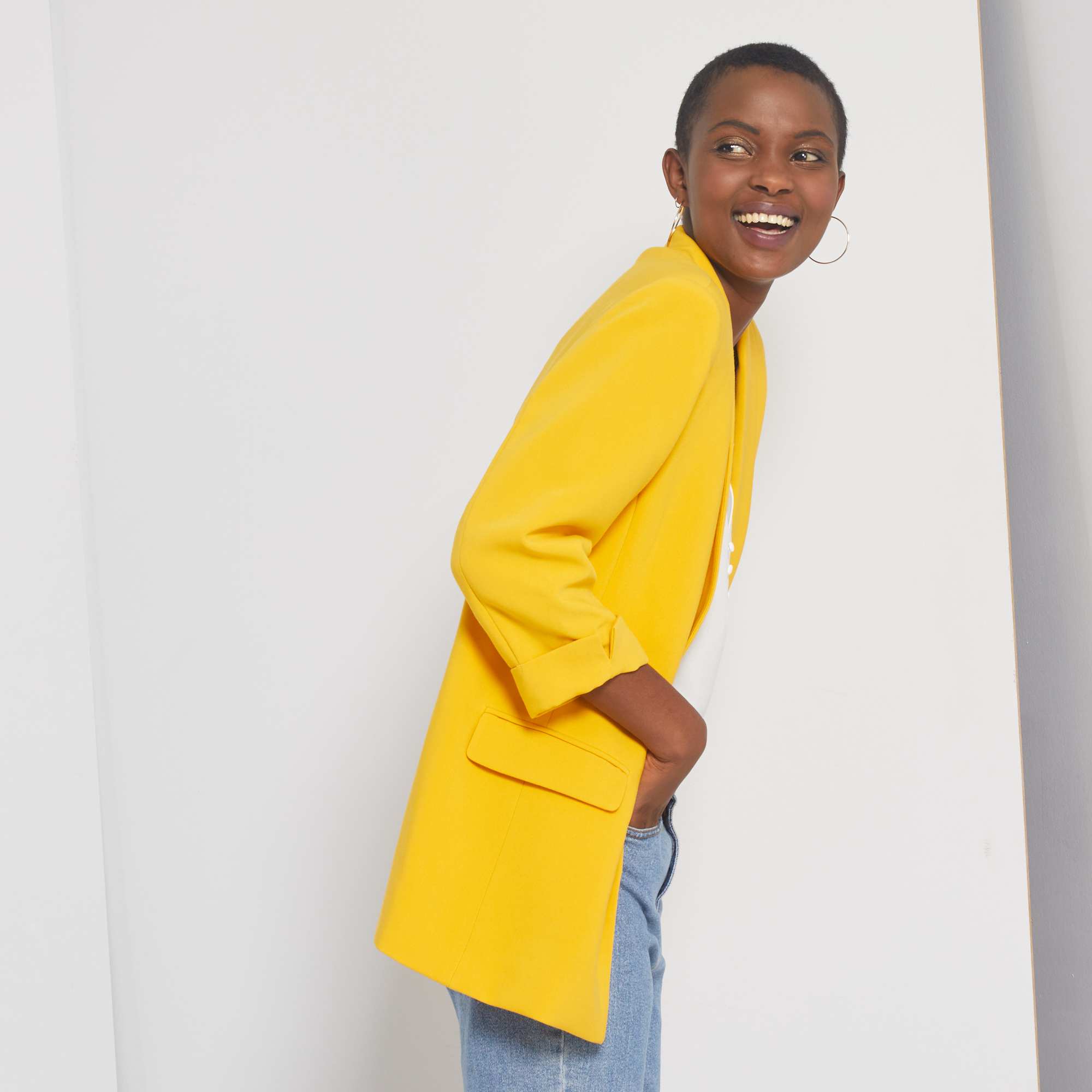 Veste blazer col droit - jaune vif