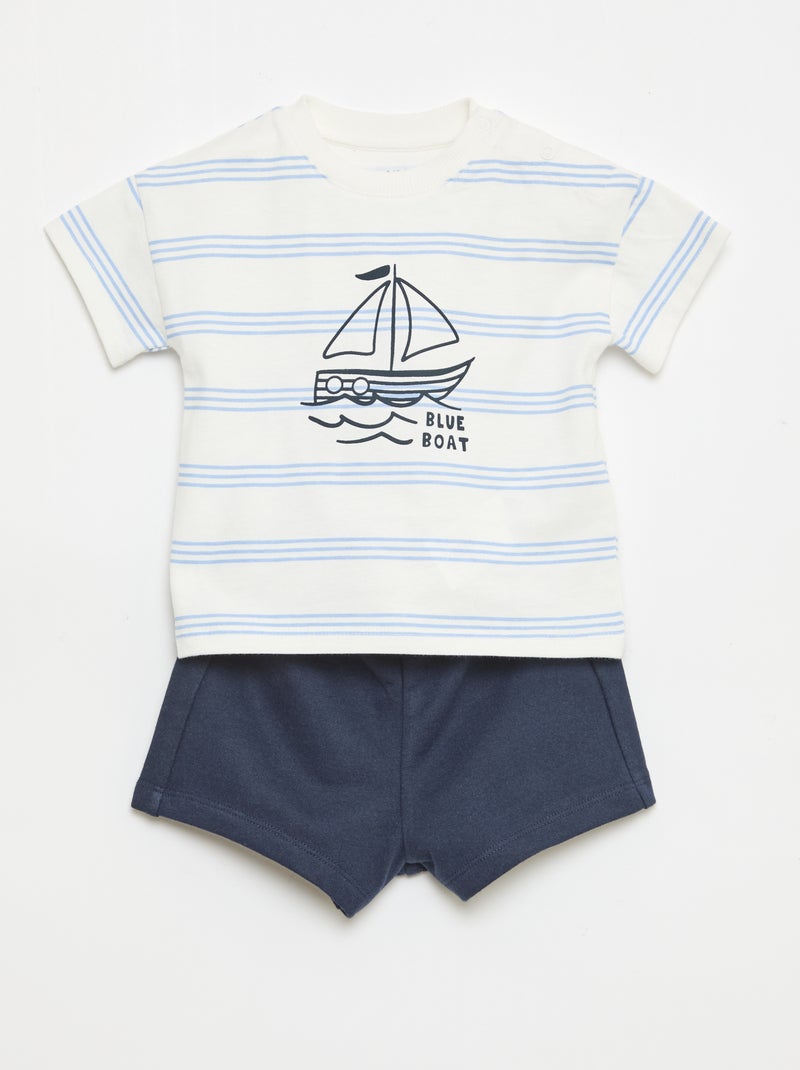 2-delige katoenen set: T-shirt + short - Wit
