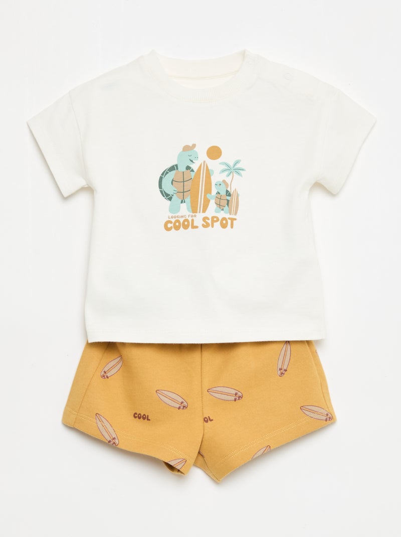 2-delige katoenen set: T-shirt + short - Wit