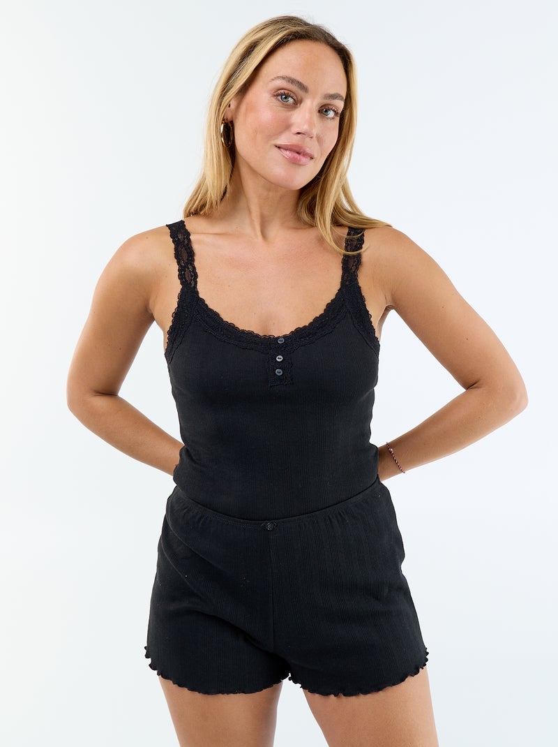 2-delige pyjamaset met short van pointelle-breisel - Zwart