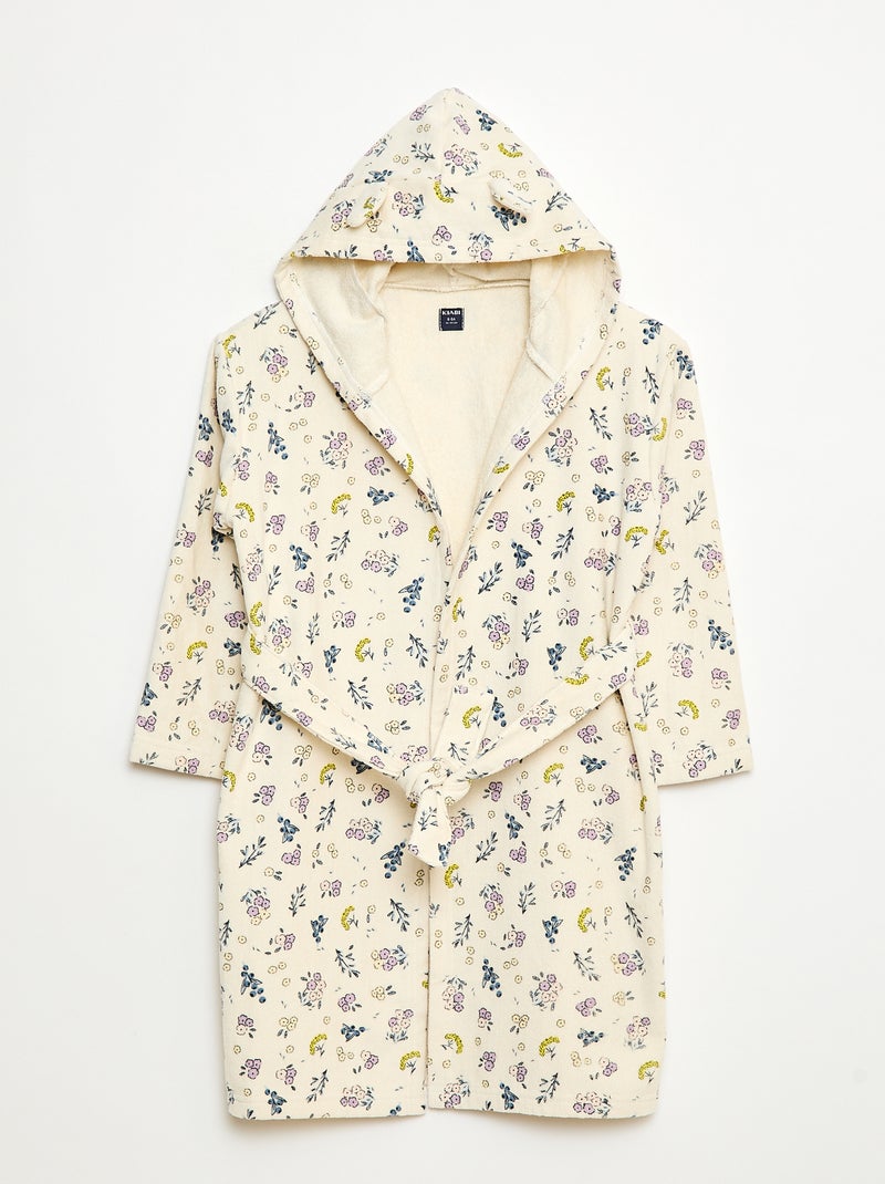 Badjas van katoenen badstof met print - Biege