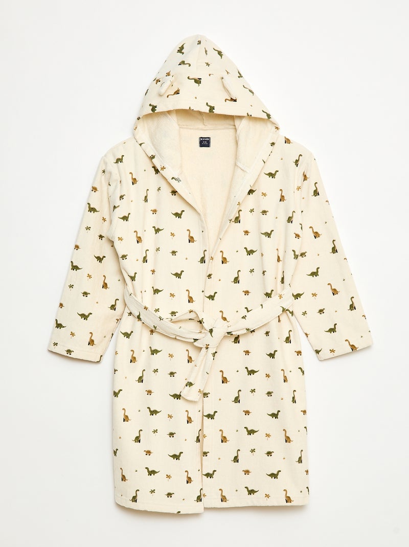 Badjas van katoenen badstof met print - Biege