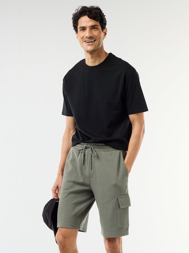 Bermuda van katoenpiqué met meerdere zakken - Groen