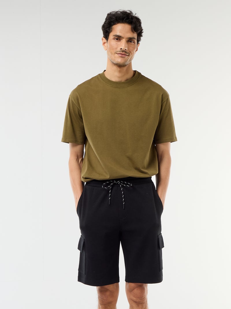 Bermuda van katoenpiqué met meerdere zakken - Zwart