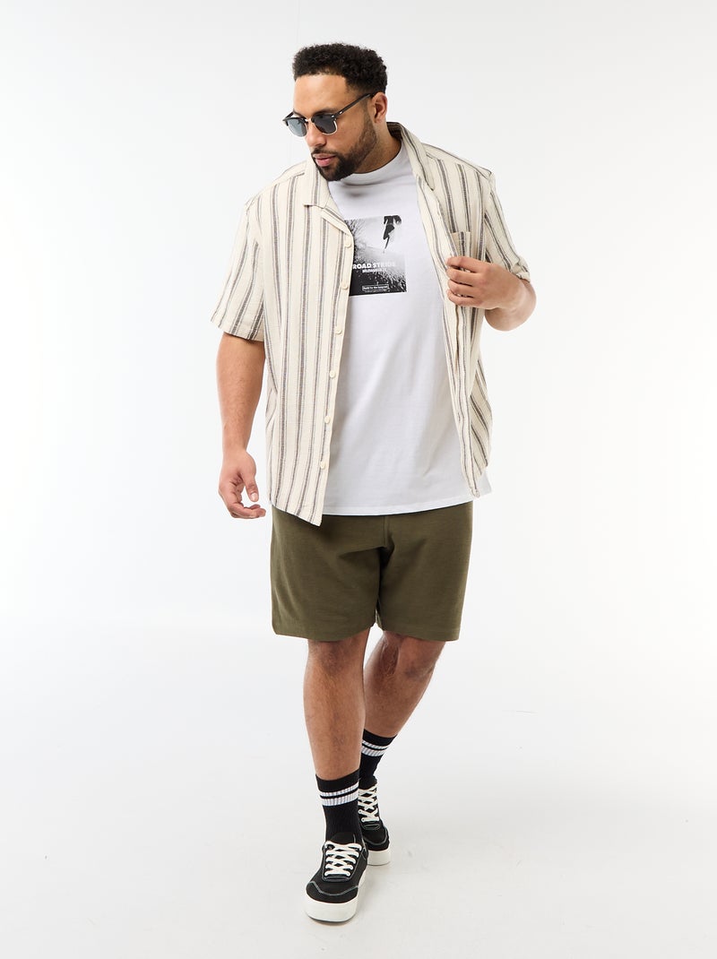 Een klassieker die je in alle kleuren wilt hebben ;) - Bermuda van lichte joggingstof - Elastische tailleband - 2 trekkoordjes - 2 zakken - 1 opgestikte zak aan de achterkant - Binnenbeenlengte: ongeveer 24 cm - Breedte onderkant pijp: ongeveer 36 cm - Ons model draagt maat 3XL en is 1,85m