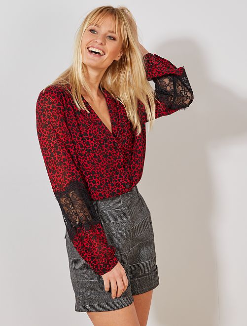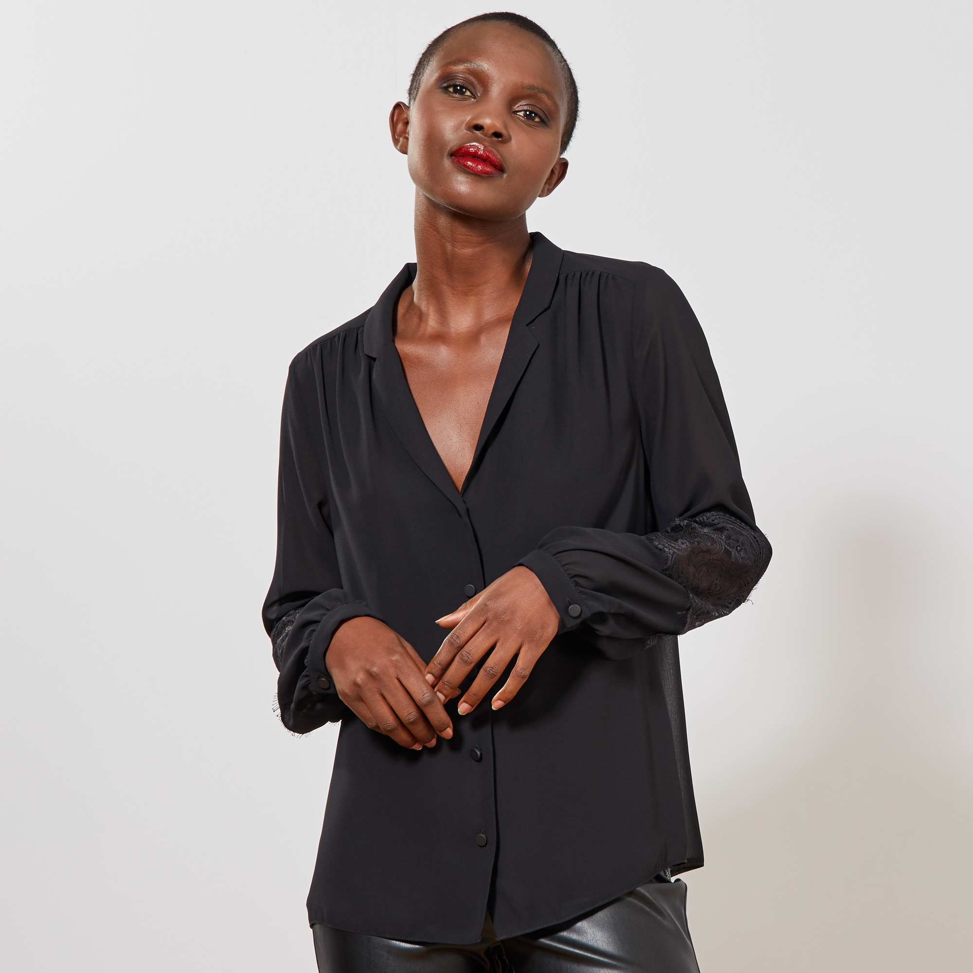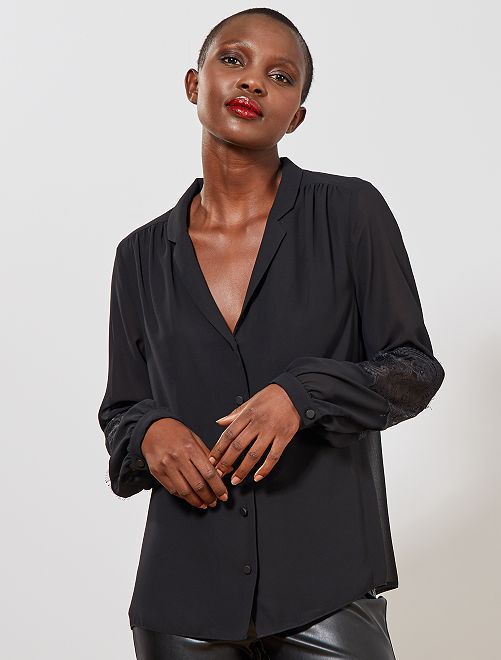 Blouse met kanten mouwtjes                                         zwart Dameskleding