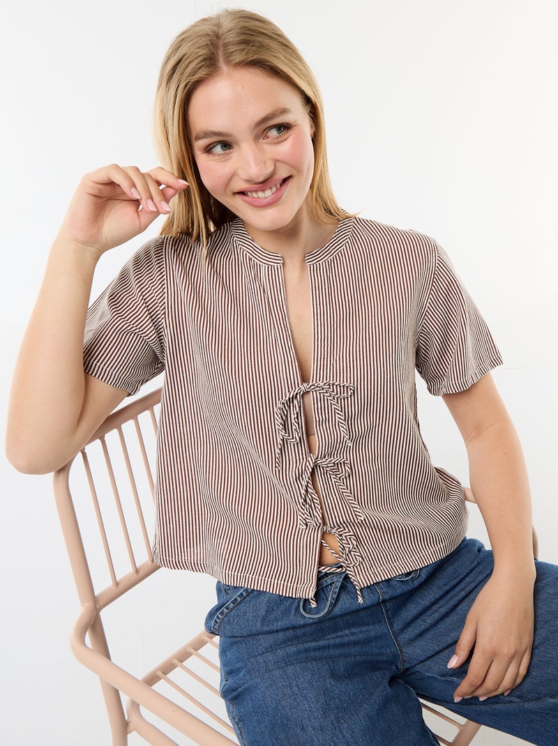 Blouse : 42% viscose, 38% katoen, 20% linnen