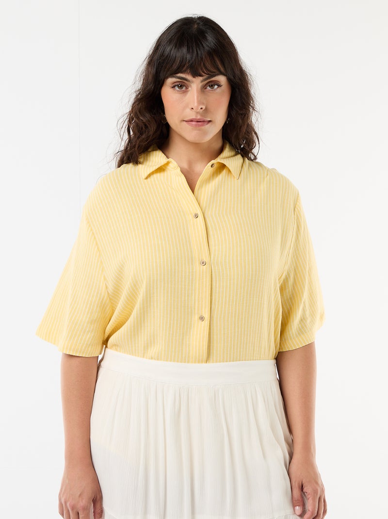 Blouse met korte mouwen en knoopsluiting - Geel