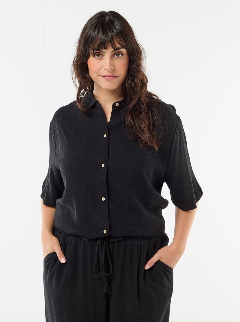 Blouse met korte mouwen en knoopsluiting - Zwart