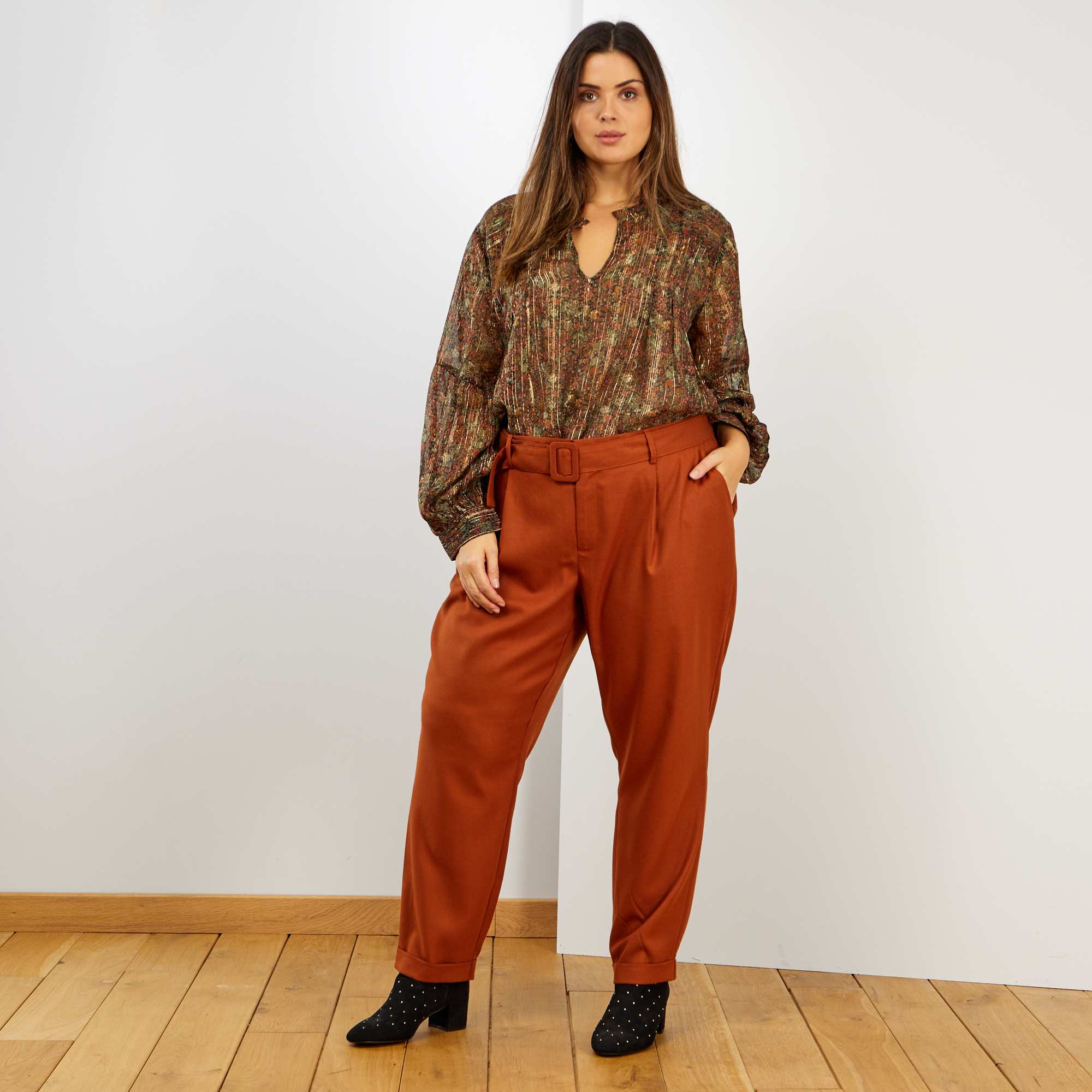 Een broek met riem in een hippe kleur en trendy model!