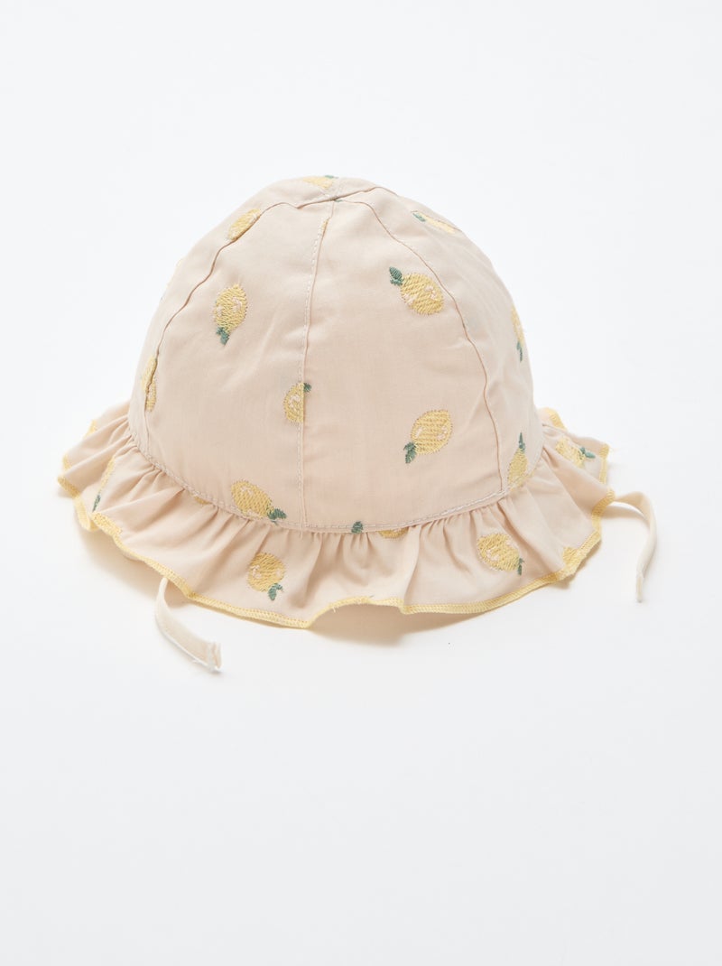 Bucket hat met ruches en geborduurde citroenen - Geel