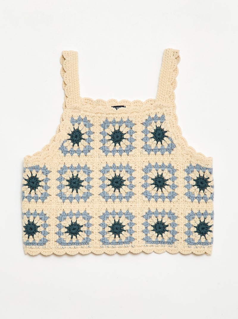 Deze mooie top geeft haar outfit een bohemien en lichte touch.