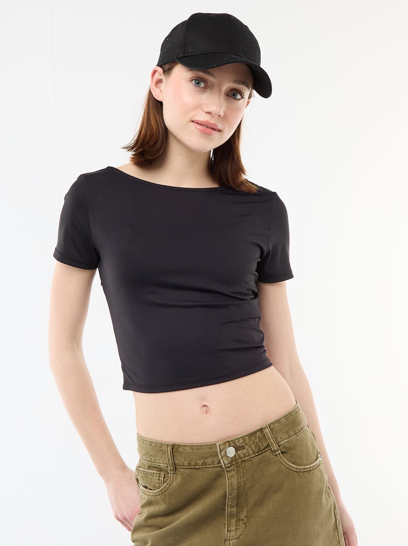 Cropped T-shirt met vierkante rugdecolleté - Zwart