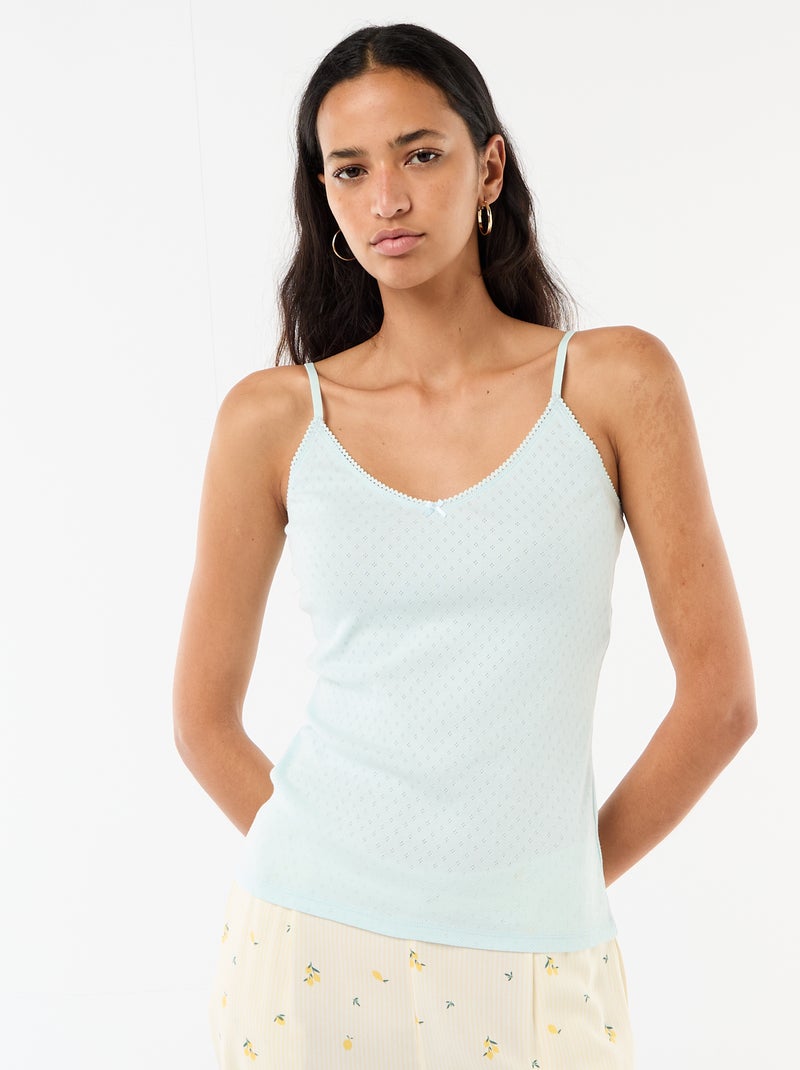 Effen hemdje met dunne verstelbare bandjes van katoen - Blauw