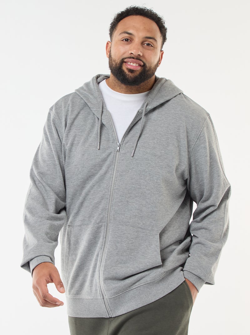 Effen hoodie met rits - Grijs