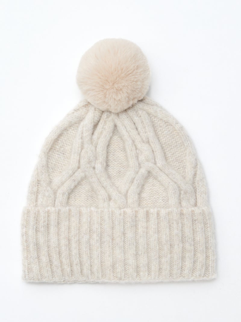 Effen muts met ribbelpatroon en kwastje - Biege