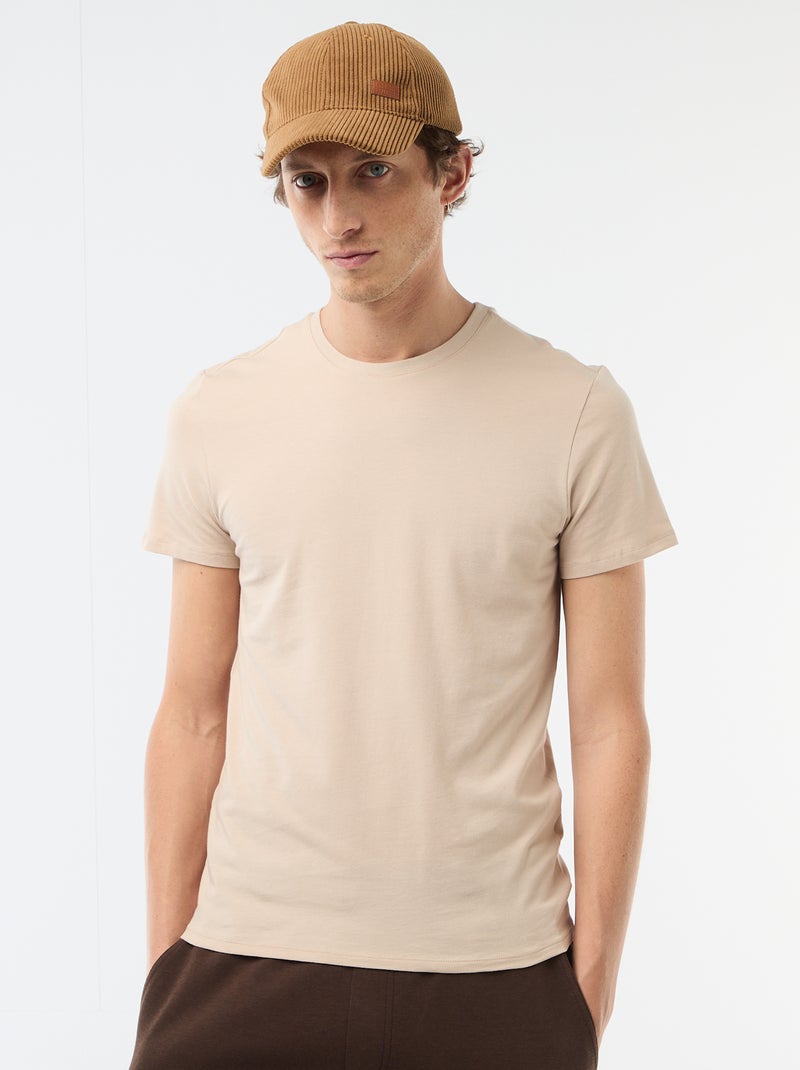 Effen T-shirt - Slim-fit - Biege