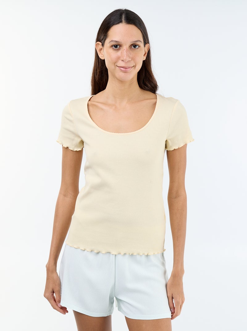 Effen T-shirt van ribtricot met korte mouw - Biege