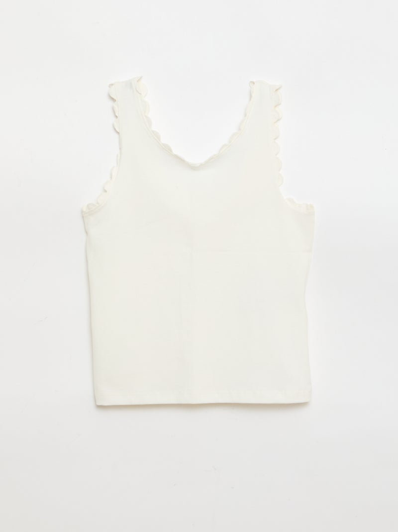 Effen top met golvende randen - Wit