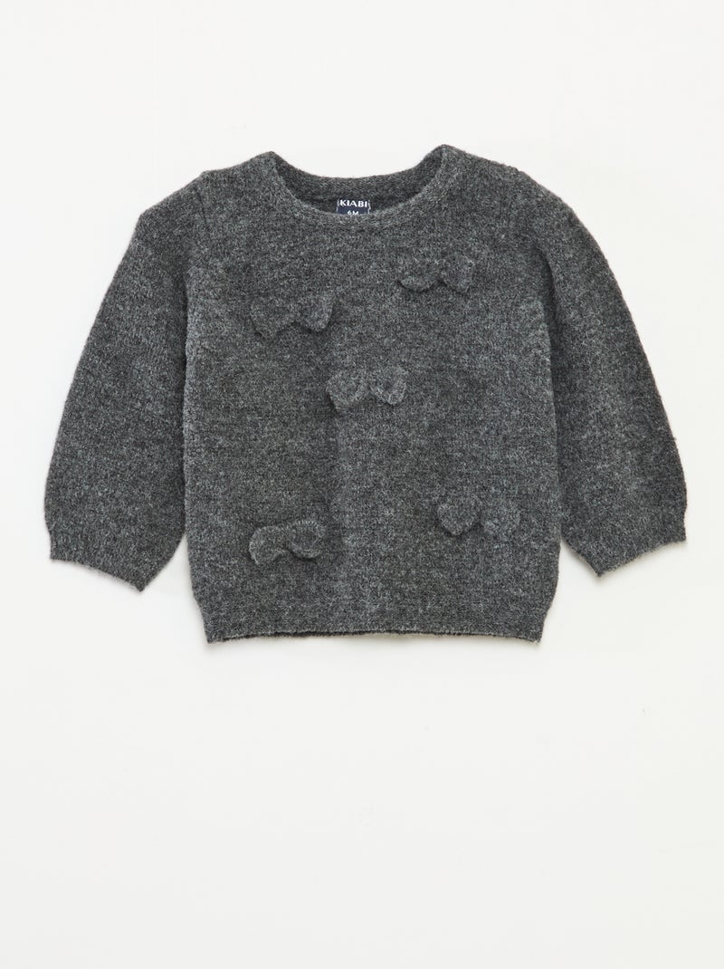 Effen trui met ronde hals en strikje - Grijs